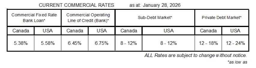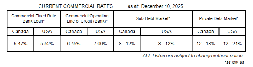Commercial Interest Rates Updated Each Week